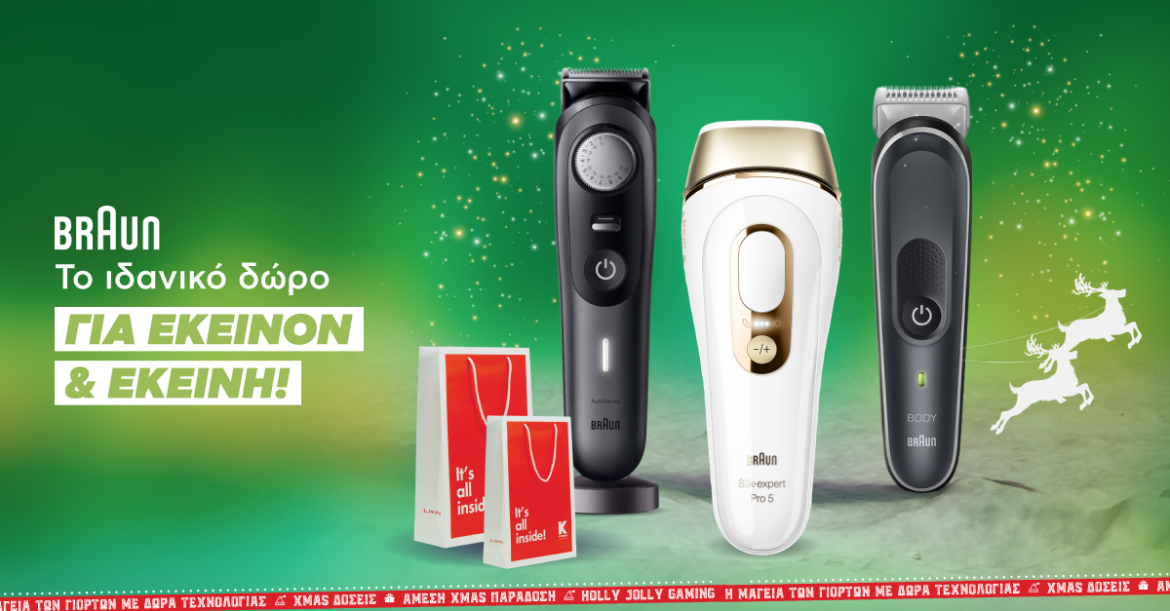 Φέτος τα Χριστούγεννα, κάνε τη διαφορά κάτω από το δέντρο! Ξέχνα τα προβλέψιμα δώρα που πιάνουν σκόνη στα ράφια. Ήρθε η ώρα να χαρίσεις κάτι που θα κάνει την καθημερινότητα των αγαπημένων σου πιο εύκολη, πιο λαμπερή και σίγουρα πιο ξεχωριστή! Τα δώρα από τη Braun και την Oral-B δεν είναι απλά gadgets, είναι εργαλεία ομορφιάς, περιποίησης και χαμόγελου που προσφέρουν πρακτικότητα και μια δόση… πολυτέλειας. Τι καλύτερο από το να προσφέρεις αυτοπεποίθηση και φροντίδα, όλα κρυμμένα σε μια σακούλα Κωτσόβολος που υπόσχεται χαμόγελα πριν καν ανοιχτεί;