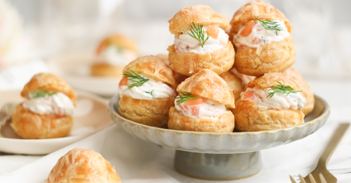- Όσο ψήνονται τα σου ετοιμάζουμε την κρέμα: προσαρμόζουμε στην κουζινομηχανή το σύρμα, βάζουμε στον κάδο την αναρή και την κρέμα γάλακτος και χτυπάμε μέχρι να ομογενοποιηθεί και να αφρατέψει το μείγμα. Τέλος προσθέτουμε τον σολομό, τον άνηθο, ανάλογο αλατοπίπερο και ανακατεύουμε με σπάτουλα. Μεταφέρουμε σε σακούλα ζαχαροπλαστικής και αφήνουμε τη γέμιση στο ψυγείο.