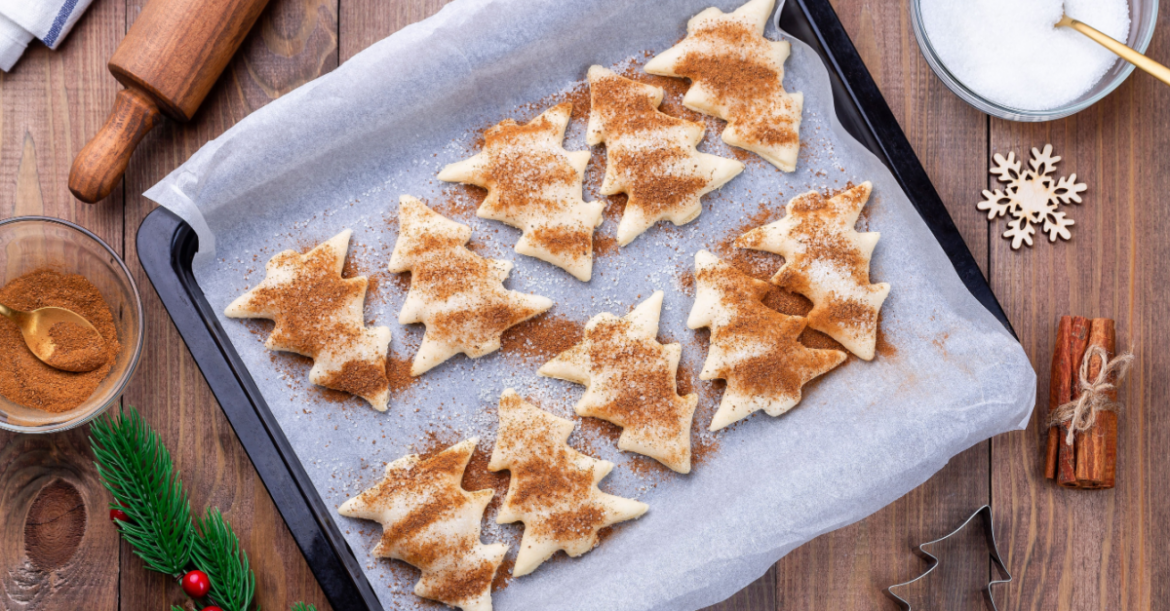 Διπλώνουμε τη σφολιάτα γύρω από τα μήλα και σχηματίζουμε το σχήμα που θέλουμε. Εμείς προτείνουμε Χριστουγεννιάτικα δεντράκια.