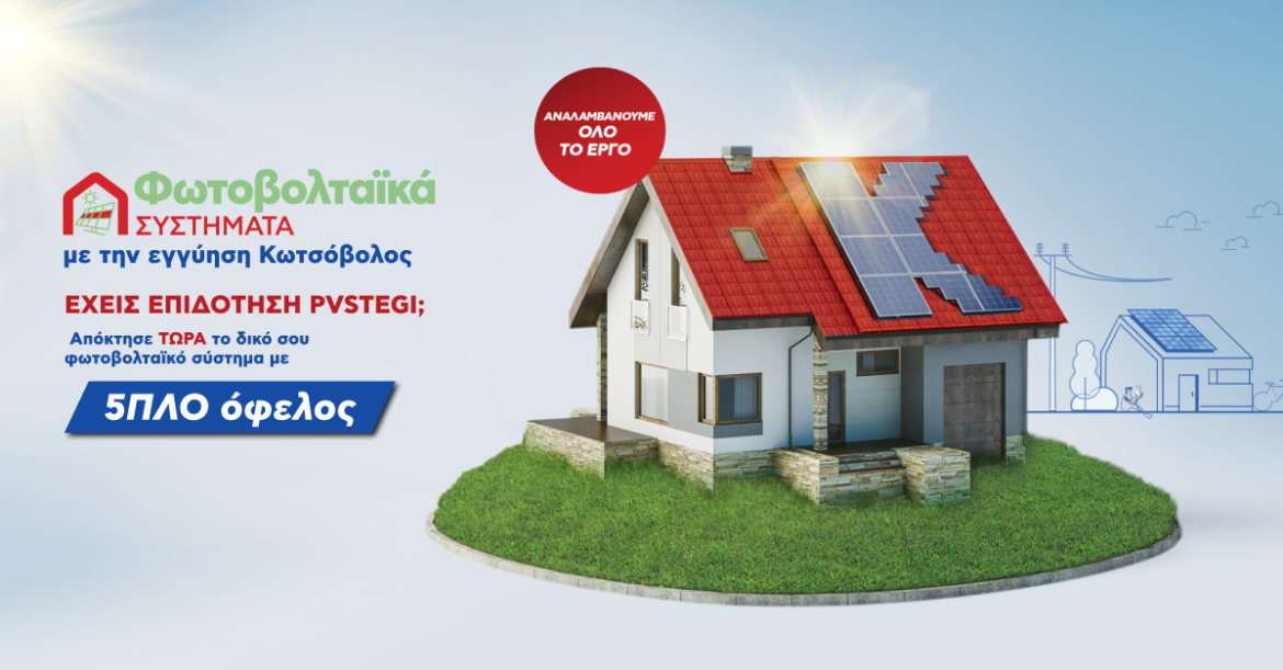 Αν τα χέρια σου… τρέμουν κάθε φορά που ανοίγεις έναν λογαριασμό ρεύματος, ήρθε η στιγμή να πάρεις την τύχη στα χέρια σου και να εκμεταλλευτείς τον ελληνικό ήλιο, το πρόγραμμα επιδότησης «Φωτοβολταϊκά στη Στέγη» και τα επιπρόσθετα οφέλη που παρέχει η συνεργασία με τον Κωτσόβολο!