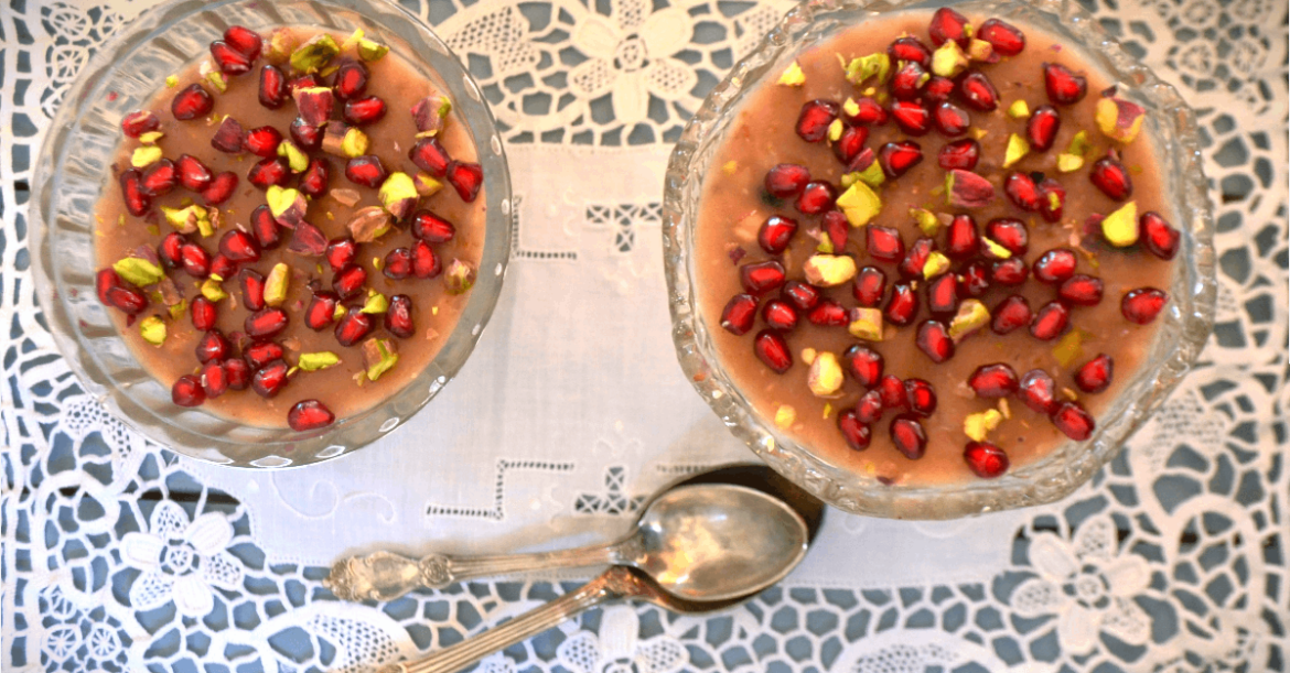 - Αφού κρυώσει και πήξει τον σερβίρουμε με επιπλέον φιστίκια Αιγίνης ή καρύδια ή φουντούκια ψιλοκομμένα καθώς και με σποράκια φρεσκοσπαμένου ροδιού.
