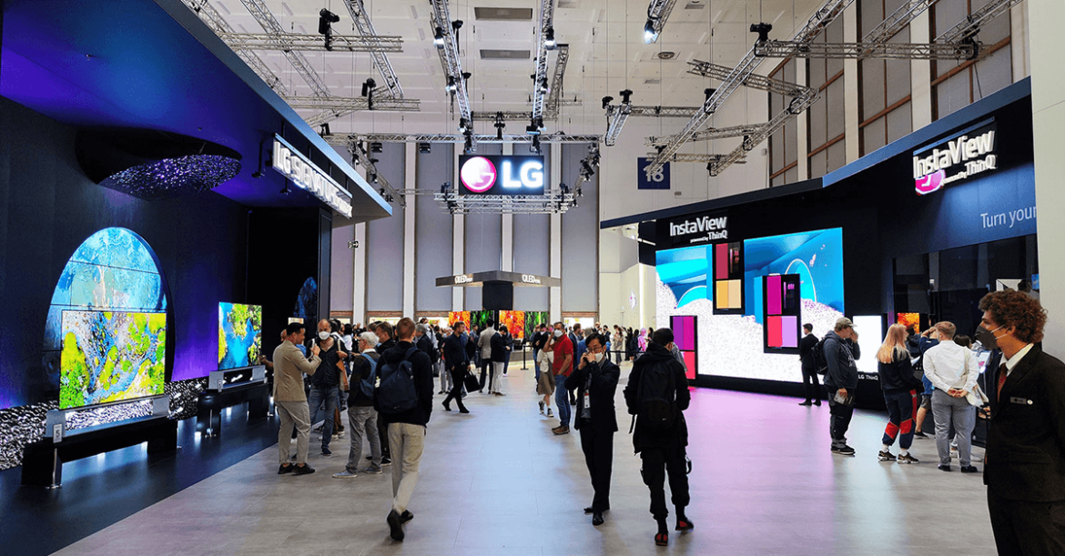 Εντυπωσιακό το περίπτερο της LG εδώ στην έκθεση IFA 2022 με πληθώρα λευκών και μαύρων συσκευών που ξεχωρίζουν τόσο από τις πρωτοποριακές καινοτομίες όσο και με την ιδιαίτερη σχεδιαστή τους αντίληψη. Η πιο μεγάλη οθόνη OLED του κόσμου, οθόνη gaming που μετατρέπεται σε curved από flat, ψυγείο που αλλάζει χρώματα αλλά και καθαριστής αέρα στο σχήμα τραπεζιού, ξεχώρισαν εδώ στο Βερολίνο.