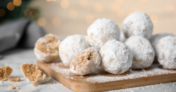 5 Πλάθουμε μικρές μπαλίτσες μπουκίτσες και τις τοποθετούμε στο ταψί μας πάνω από το αντικολλητικό χαρτί ψησίματος. Τις πιέζουμε λίγο στο κέντρο να κάνουν ένα μικρό βαθούλωμα.