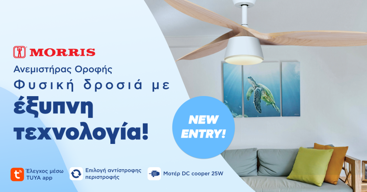 Είναι μεσημέρι. Το φως χύνεται μέσα από τις κουρτίνες, ζεσταίνει το δωμάτιο και κάνει το πάτωμα να λαμπυρίζει. Έξω επικρατεί νηνεμία. Κι όμως, ο χώρος σου είναι δροσερός, ήσυχος, άνετος. Όχι γιατί φύσηξε λίγο αεράκι, αλλά γιατί εσύ φρόντισες για όλα. Από το κινητό σου, μέσα από την εφαρμογή TUYA, έχεις ενεργοποιήσει τον ανεμιστήρα οροφής Morris MFC-52313. Χωρίς φασαρία, χωρίς άγαρμπες ριπές αέρα, χωρίς ανεμιστηράκια να στριφογυρίζουν μπροστά σου, νιώθεις μόνο μια ήπια, σταθερή δροσιά που απλώνεται διακριτικά στον χώρο. Δεν σε χτυπάει. Σε περιβάλλει. Και τη νιώθεις να σε ξεκουράζει χωρίς να κάνεις τίποτα. Έτσι είναι η δροσιά όταν σχεδιάζεται με φροντίδα.
