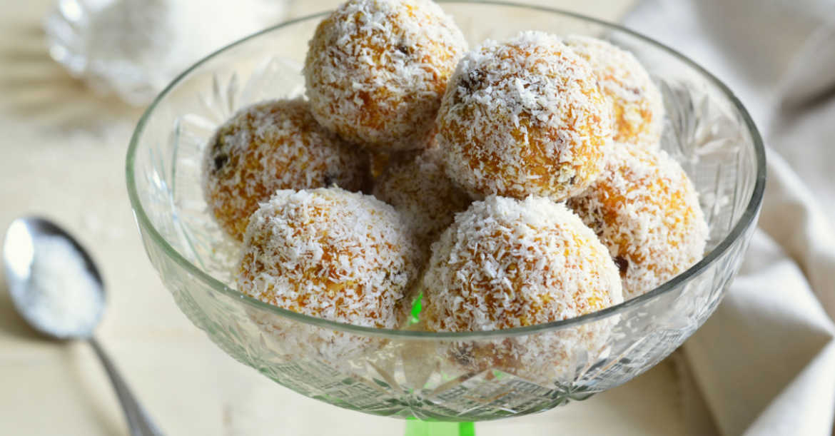 - Αφήνουμε το μείγμα στο ψυγείο για μισή ώρα να σταθεί και στη συνέχεια παίρνουμε μικρές ποσότητες των 20-25 γραμμαρίων και πλάθουμε μπαλίτσες τις οποίες κυλάμε πάνω σε ινδοκάρυδο.