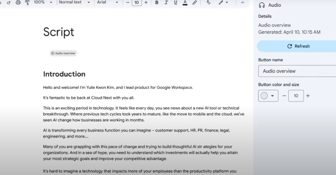 Προσέλκυσε μεγάλη προσοχή όταν η Google την πρόσφερε ως μέρος του εργαλείου για έρευνες, NotebookLM και είναι επίσης διαθέσιμη στο Gemini app όταν ανεβάζετε ένα αρχείο. Το επόμενο διάστημα έρχεται και στο Google Docs, για να δημιουργείς εύκολα περιλήψεις, μαζί με την επιλογή να διαβάζει η τεχνητή νοημοσύνη το άρθρο.